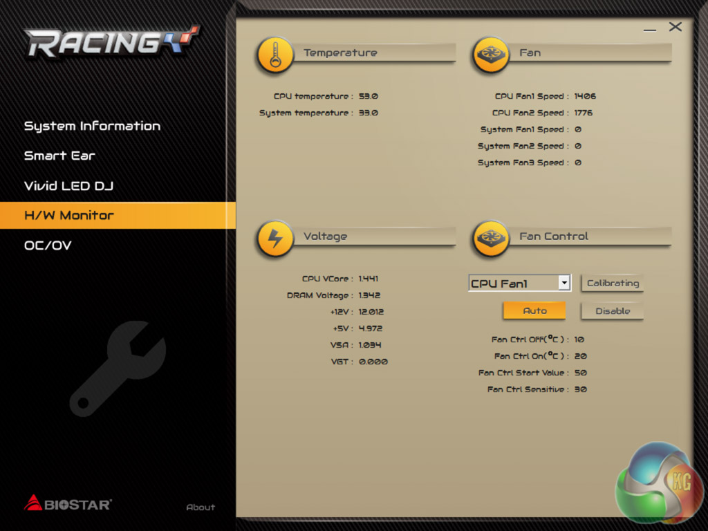 H/W monitor provides a number of temperature, fan and voltage readouts as well as the ability to toggle fan control. Biostar misses a trick though by not offering full fan controls within the operating system like other motherboard vendors do.