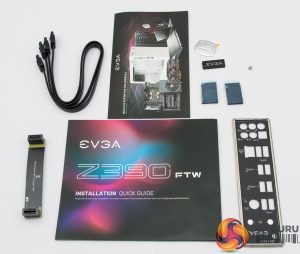 The packaging highlights a number of key features about the EVGA Z390 FTW including dual M.2, onboard power and reset buttons and an “11 phase PWM”, a marketing centric claim that will be de-mystified later on.