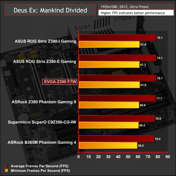 Gaming performance is towards the top of the pack assisted by EVGA's decision to ignore Intel stock specification on Turbo behaviour, which results in enhanced CPU performance.