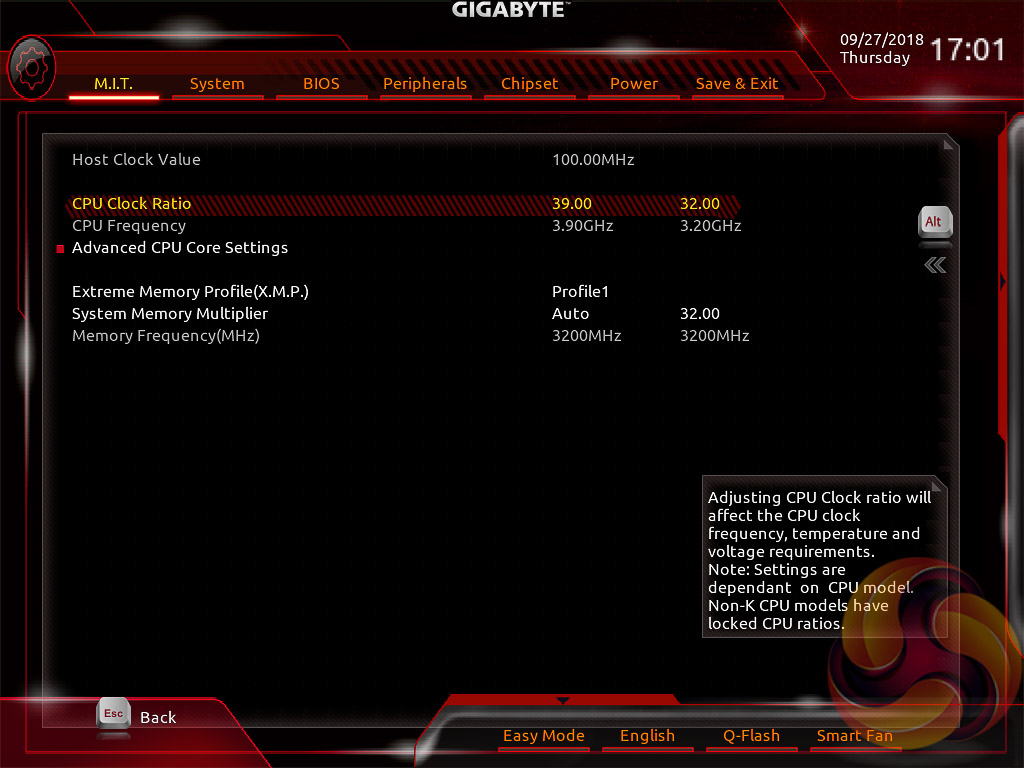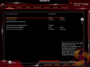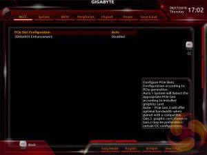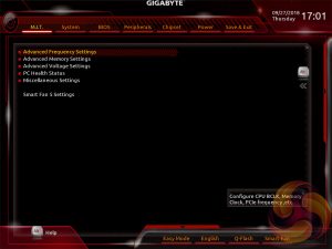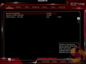 The fact the user has to keep tabbing back and forth between the various menus of the M.I.T makes the tweaking process a little tiresome. Gigabyte could still consider a more user-friendly layout that involves less menu management by simply presenting more options on each page with less nested sub-menus.