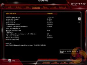 UPDATE 05/10/2018 – Gigabyte issued an updated UEFI version F3B which supports up to 1.3v vCore with the Ryzen 7 2700, by increasing the maximum offset from +0.204v to +0.300v. See more details on the page “Overclocking & Power Consumption”.