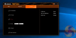 RGB Fusion is Gigabyte’s LED software that will let you manage the onboard RGB LED zones or connected digital or RGB LED strips. There are three tabs – basic, advanced and intelligent – which hold different levels of granularity and control. The advanced tab will allow you to control the motherboard and strips independently of each other while in the basic tab changes of colour and lighting pattern will be automatically applied to all controllable LEDs.