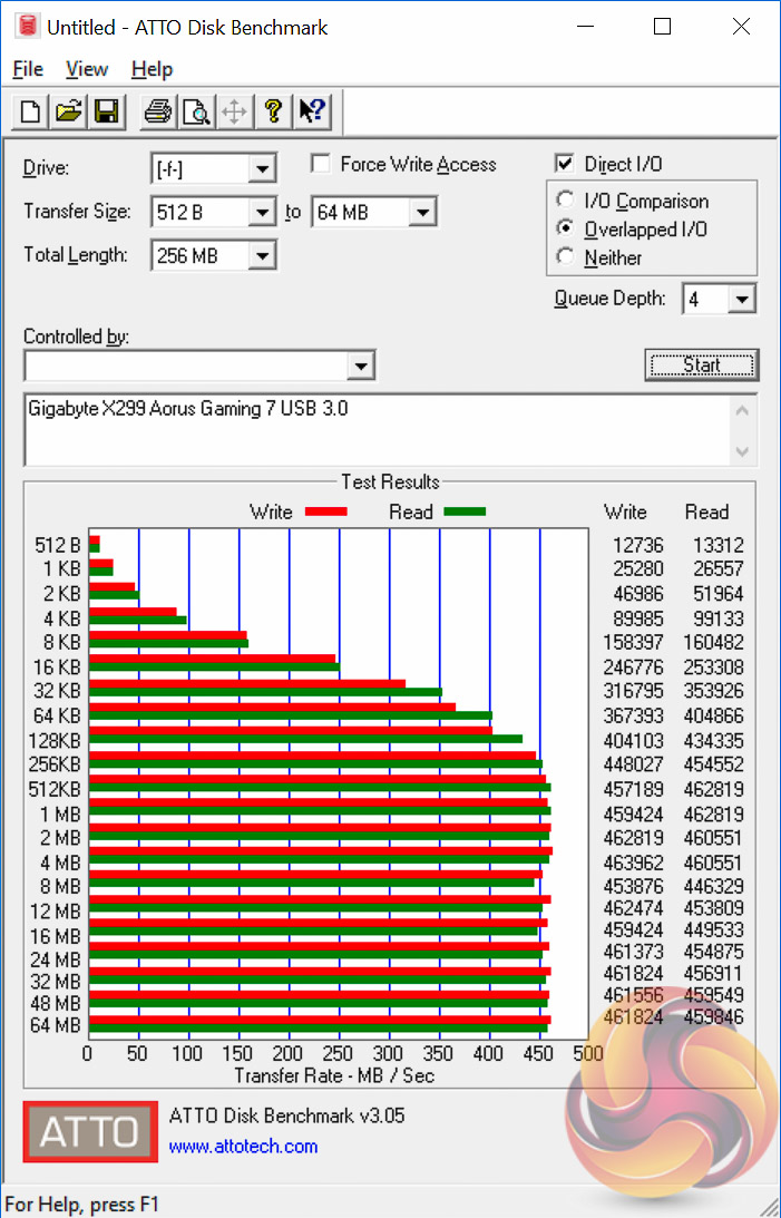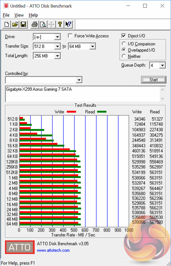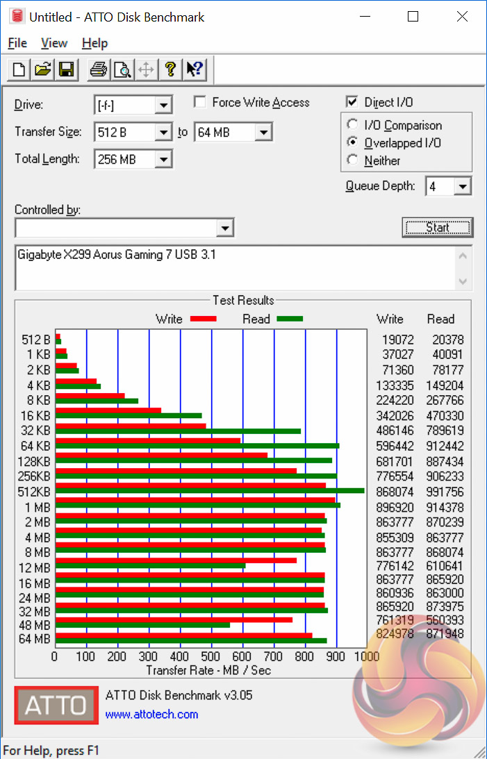 The ATTO disk benchmark is a Windows-based utility for testing storage performance of any storage drive or controller. We use the default benchmark setup.