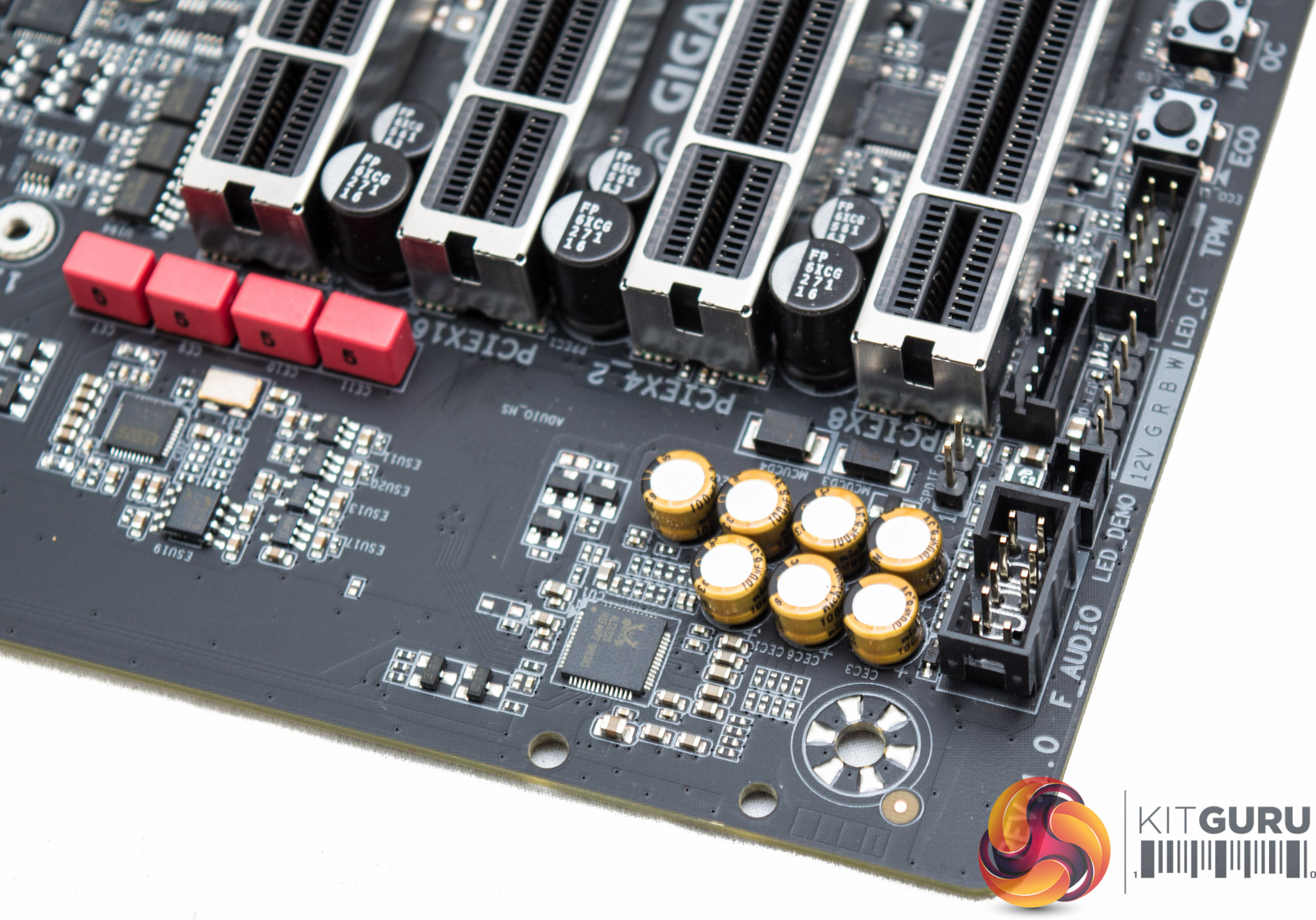 For the first time in a long while for a gaming motherboard we didn't observe any trace of the long-lauded “isolated PCB” for Gigabyte's audio section. Later on we'll see what implications that has, if any, for audio performance.