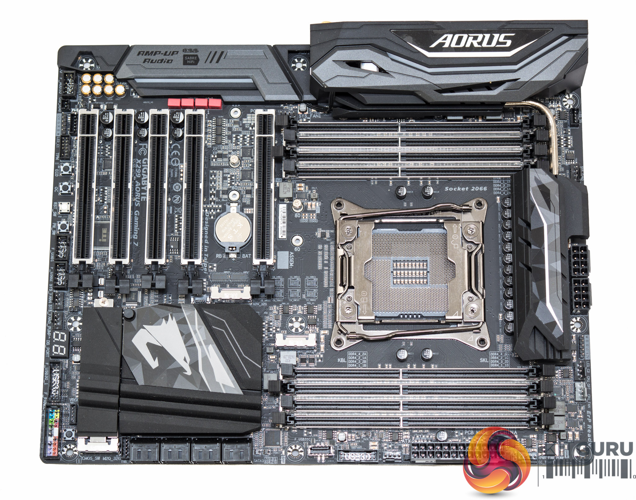 Gigabyte's X299 Aorus Gaming 7 is another example of a previously quite distinctive motherboard vendor opting for a more subtle and subdued design. Gone are the days of green or orange, the Aorus Gaming 7 is for the most part colour neutral using black, grey, white and silver with enhancement from its RGB setup.