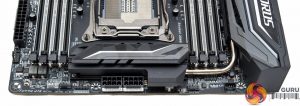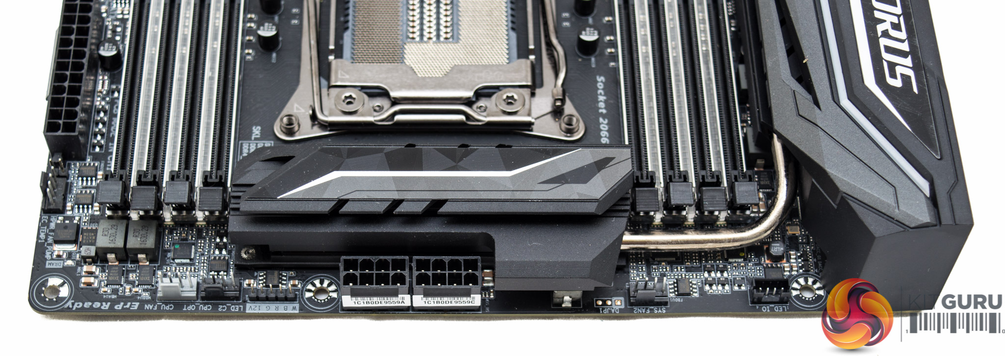 CPU power comes in through dual 8-pin EPS connections which are useful for heavy overclocking of Intel Core i9 units. CPU cooling duties are handled by two CPU fan headers, a water pump header plus a nearby system fan and second water pump header. The board does have a total of eight fan headers which is a very large number even by high-end motherboard standards.