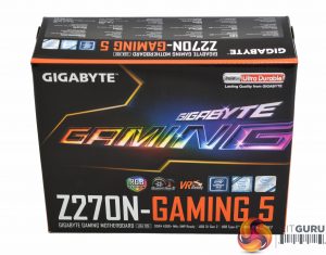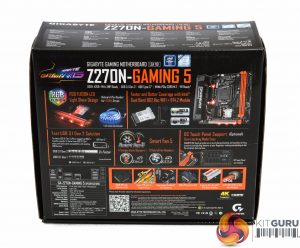 Gigabyte's packaging for the Z270N-Gaming 5 is as diminutive as the product itself. Despite that, Gigabyte manages to cram a whole raft of information onto the box pointing out its key selling points such as RGB lighting, Intel AC WiFi and USB 3.1.