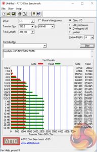 The ATTO disk benchmark is a Windows-based utility for testing storage performance of any storage drive or controller. We use the default benchmark setup.