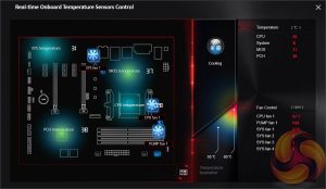Under the Advanced sensor settings there is a nice visualisation provided of temperatures across the motherboard, such as the MOS sensor or the chipset sensor, there’s also more detailed recording and monitoring functionality available including system alerts under the Setting and Information sections.