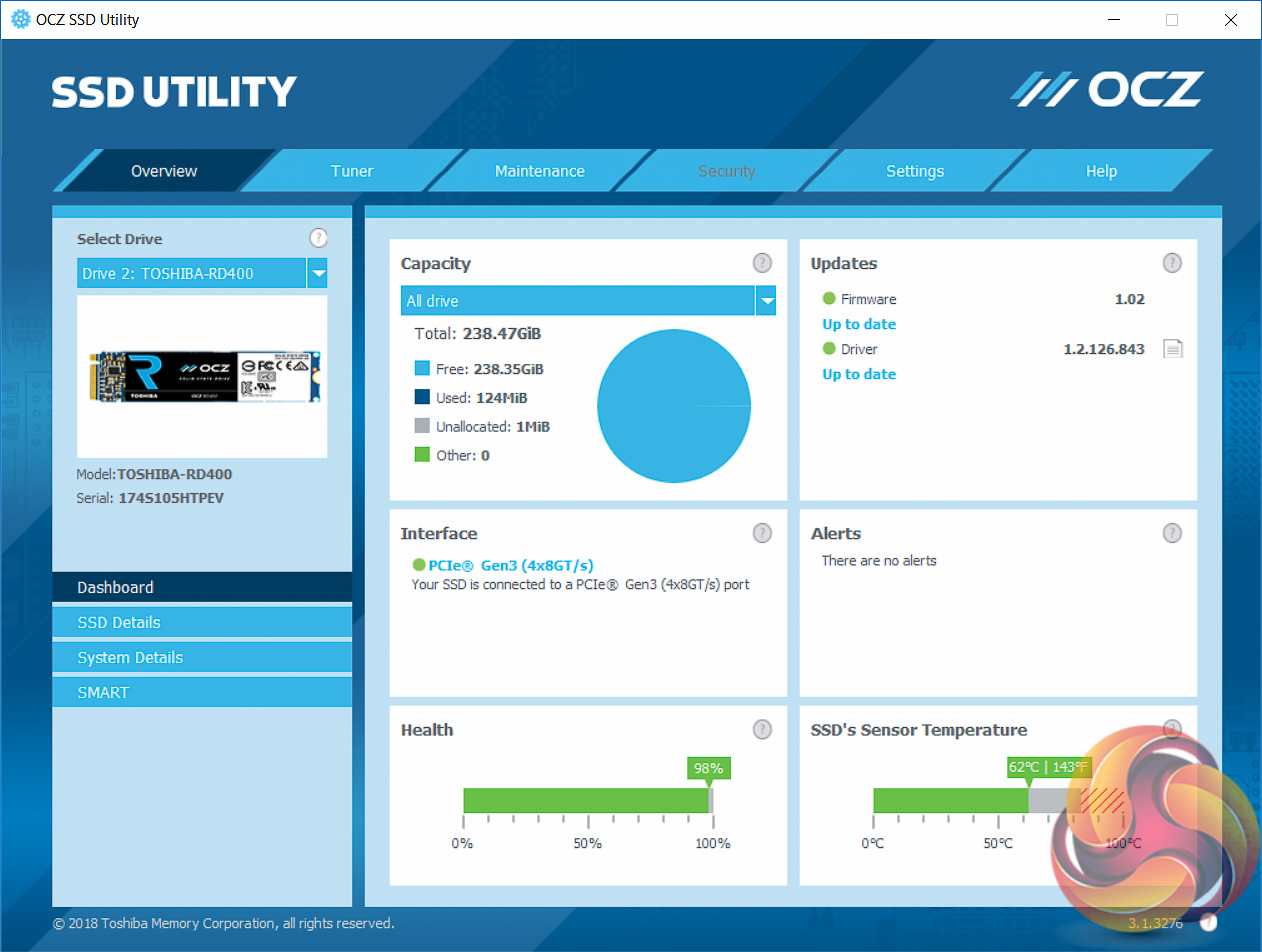 For M.2 testing we use a Toshiba OCZ RD400 256GB M.2 PCIe NVMe SSD.