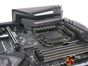 The motherboard uses a pair of heatsinks, joined together by a nickel-copper heat pipe. This is one step ahead most motherboards on the Z390 platform which often lack heat pipe cooling and tend to bunch up most of the VCore VRMs onto a single heatsink.