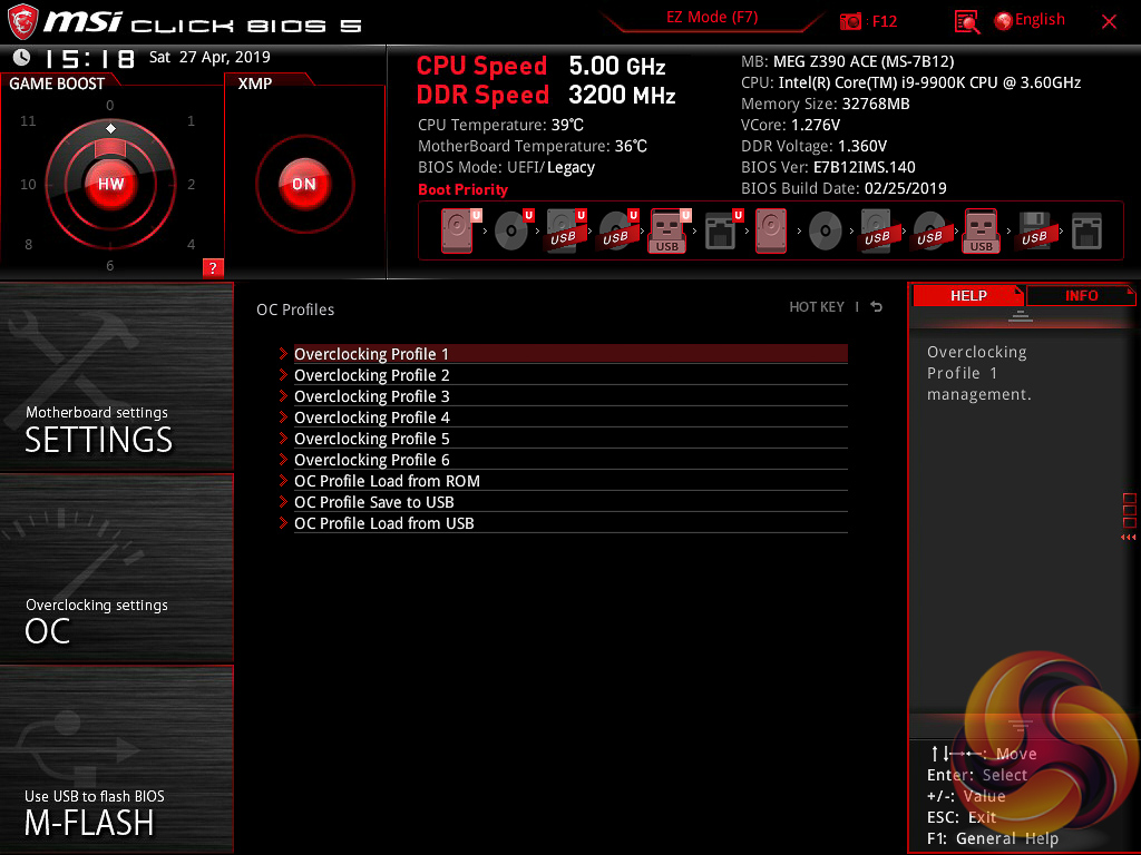 The OC Profile section hasn’t changed a great deal in successive generations, it still allows you to save OC profiles to blank slots, load in OC profiles from a USB stick or export them to a USB stick. It’s a useful capability that should facilitate sharing of decent OC profiles on forums and across the internet more generally.