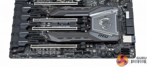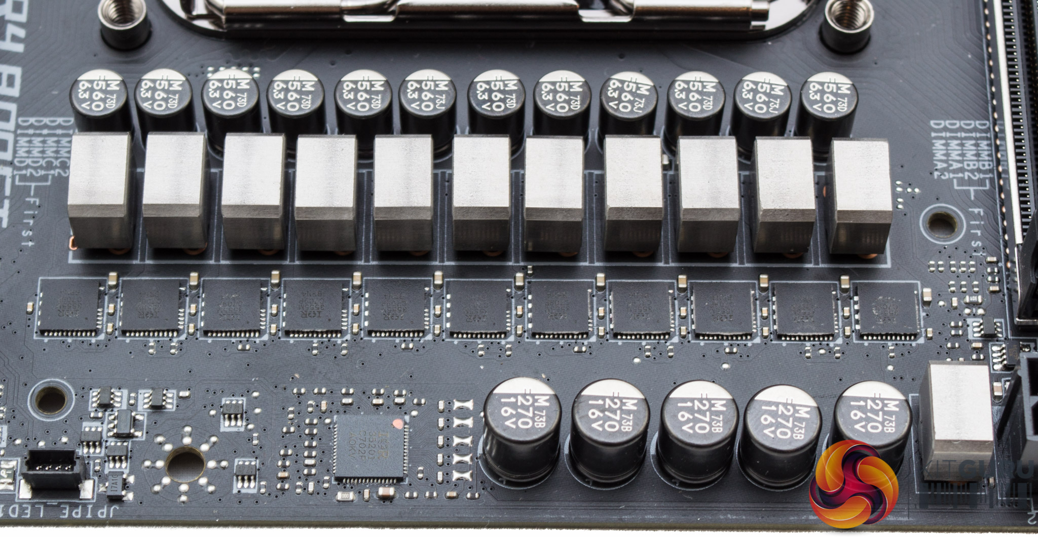 MSI brags about its “12 phase VRM” of which 10 phases control the vCore direct with a further 2 phases covering other aspects of the CPU for a “10+1+1” configuration. The memory system also gets a further 2 phases.