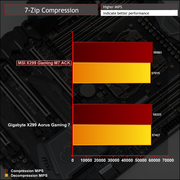 7-Zip is an open source Windows utility for manipulating archives. We measure the Total Rating performance using the built-in benchmark tool. The test stresses all CPU cores to 100% and shows an affinity for memory bandwidth.
