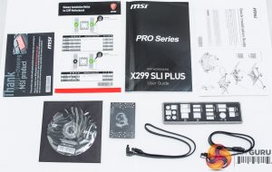 The accessory bundle is a simpler affair than most X299 motherboards including only documentation, a driver & utility DVD, SATA cables, an I/O shield and an SLI bridge.