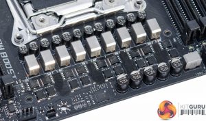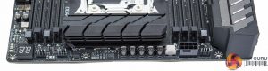 The CPU VRM heatsink is a monolithic aluminium piece with no integrated heat pipe but it should be sufficient cooling for “normal” consumer usage. Users looking to push their systems to the absolute limits with Intel's new 18-core CPU (i9 7980XE) and/or LN2 usage may need to seek further VRM cooling.