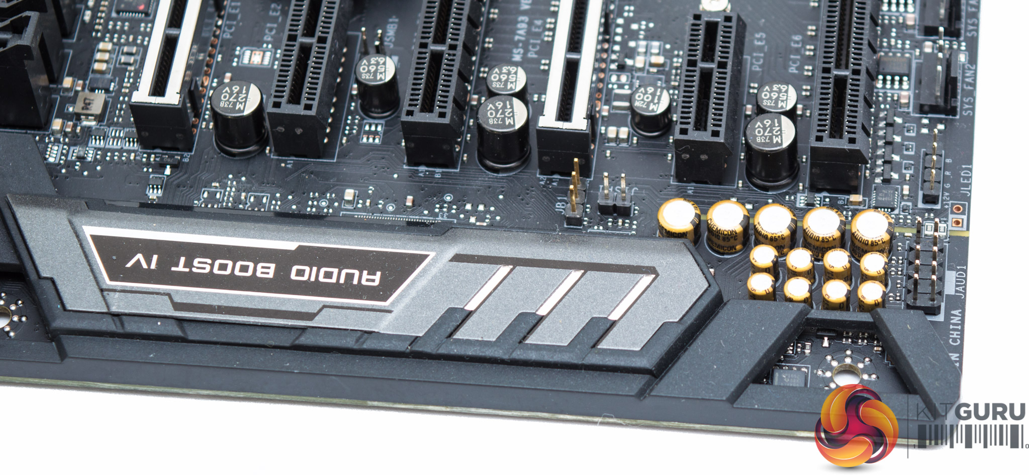 MSI mixes SATA and USB 3.0 headers in vertical and right-angled configurations which can make cable management a little untidy. There's a front panel USB 3.1 header between the two USB 3.0 headers for cases which support the new standard.