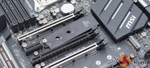 MSI provides an M2 thermal solution for the top-most M2 slot which consists of a metal plate and thermal pad. It's not as heavy duty as other solutions we've seen where M.2 cooling duties are integrated into the chipset heatsink, but it should still be better than nothing.
