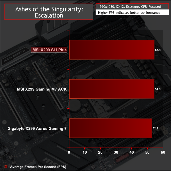 Ashes of the Singularity: Escalation is a Sci-Fi real-time strategy game built for the PC platform. The game includes a built-in benchmark tool and was one of the first available DirectX 12 benchmarks. We run the CPU-focused benchmark using DirectX 12, a 1080p resolution and the Extreme quality preset.