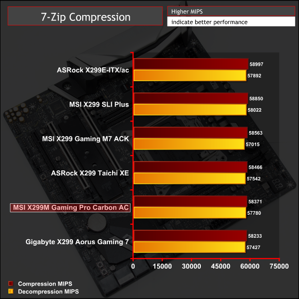 7-Zip is an open source Windows utility for manipulating archives. We measure the Total Rating performance using the built-in benchmark tool. The test stresses all CPU cores to 100% and shows an affinity for memory bandwidth.