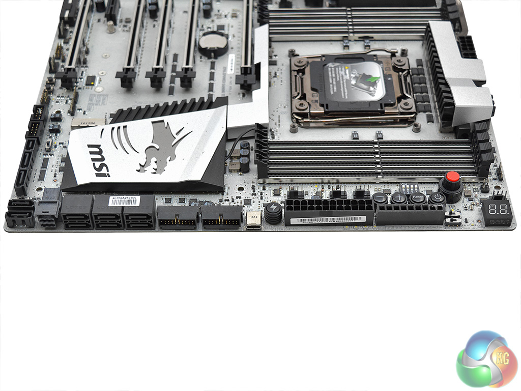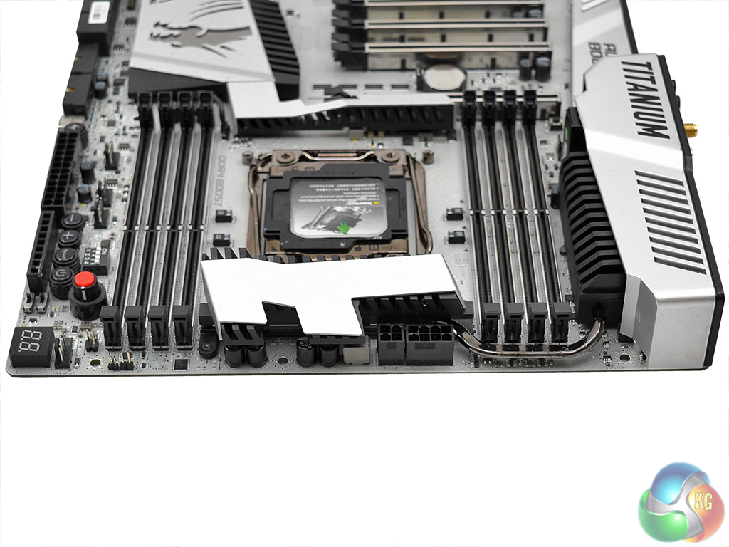 The MSI X99A XPower Gaming Titanium is a real eye-catcher with its shimmering silver colour scheme. MSI refuses to conform to the tired red-and-black theme for gaming motherboards which is a refreshing break for consumers. There is no standard RGB lighting setup for further design customisation but instead an RGB header to facilitate the usage of a third-party LED strip.