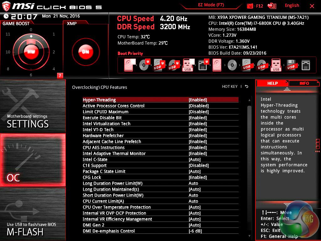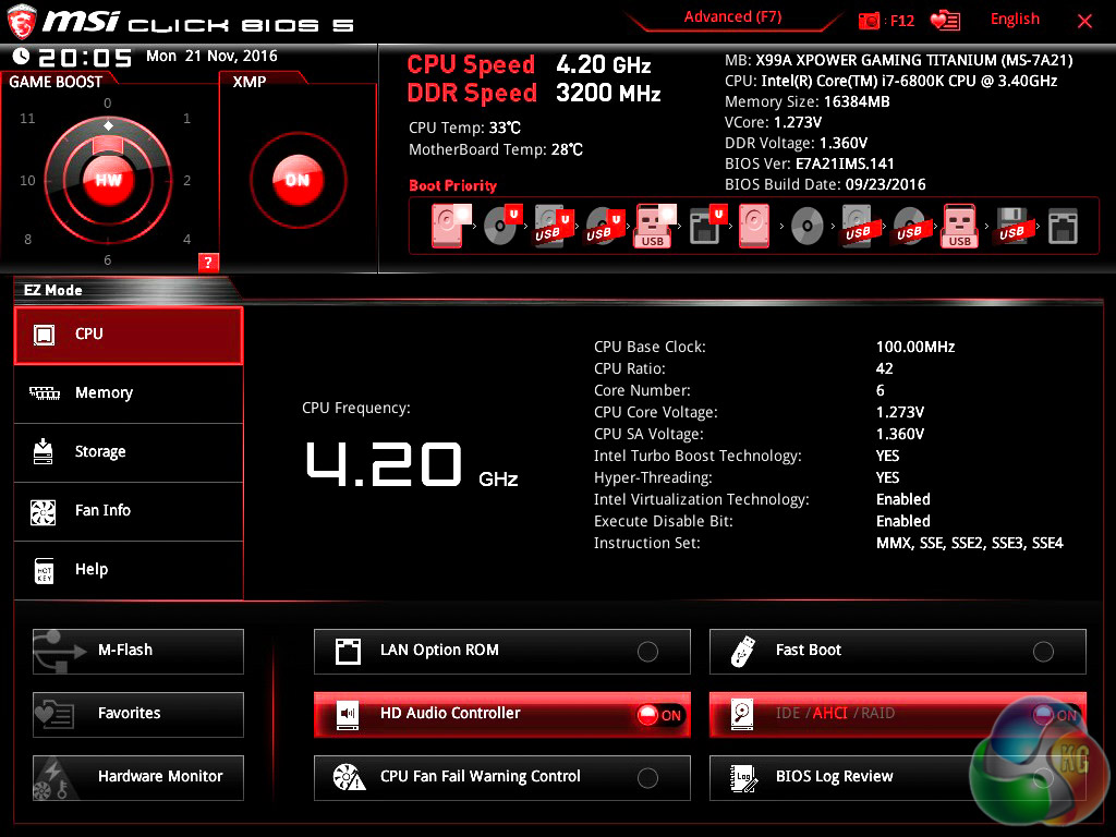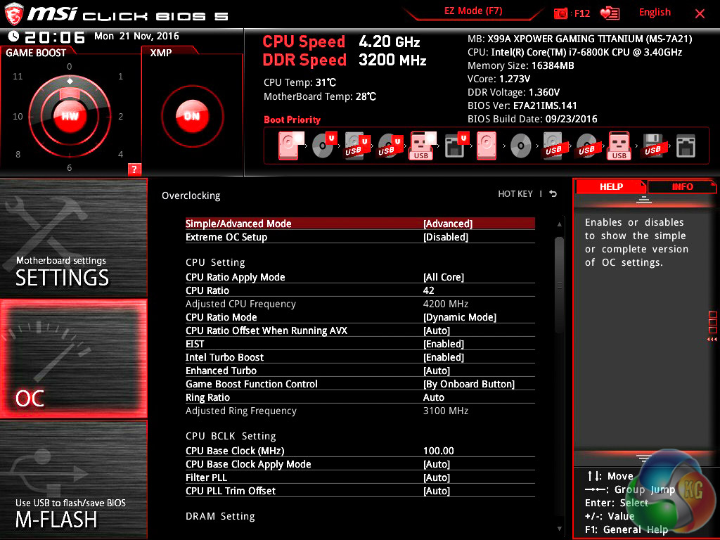 Readers will struggle to spot many functional differences between the UEFI for the X99A XPower Gaming Titanium and the previously reviewed X99A Tomahawk and X99A Godlike Gaming Carbon. That's not a bad thing, mind, since MSI's Click BIOS 5 has stood up well over time and is simple to use.
