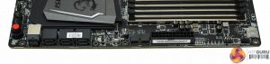In the storage area there's six SATA ports and a U.2 port. A BIOS flashback button is also presented next to SATA ports and this can be used in conjunction with the vertically mounted USB 2.0 Type-A port on the rear I/O.