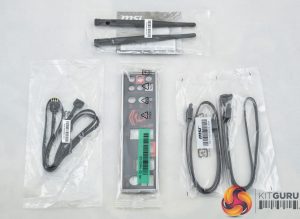 In the way of cables and accessories MSI's provides a couple of SATA cables, RGB extension cable which is useful given the somewhat awkward location of the RGB header, a rear I/O shroud and two WiFi antennae. There is no MSI M-Connector to help with the connecting of front panel cables and after consulting with the user's guide it seems this item isn't included by default, which is a shame.