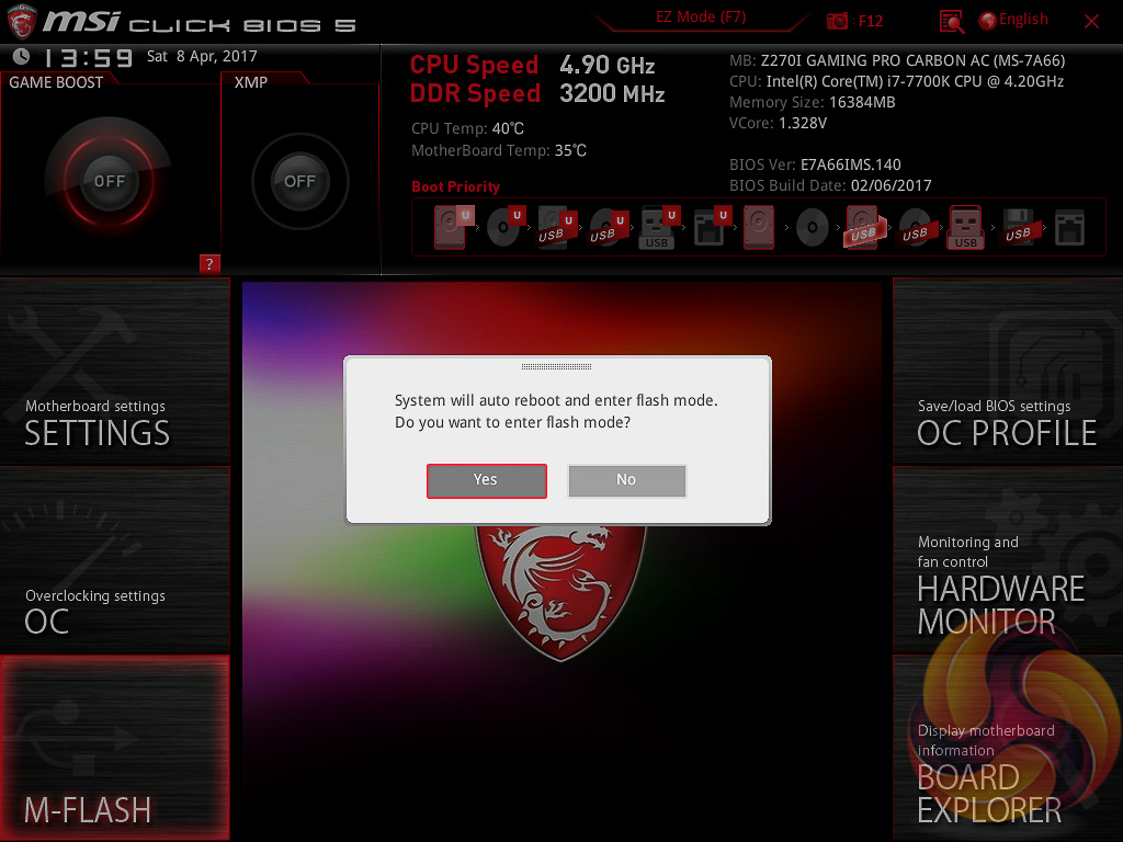M-Flash forces you to reboot to enter the flashing process which feels a little disruptive though in practice all motherboard vendors will eventually reboot at some stage during the flashing process. However, you can’t view any of the M-Flash options or interface without conducting a reboot, whereas most vendors will allow you to poodle around in the interface, see what options are available to you and even start the flash, before a reboot is eventually required.