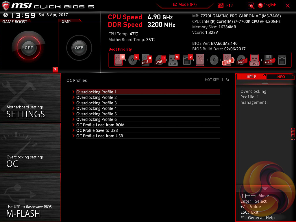 The OC Profile section hasn’t changed much in successive generations, it still allows you to save OC profiles to blank slots, load in OC profiles from a USB stick or export them to a USB stick. It’s a handy little feature that should facilitate sharing of decent OC profiles on forums and across the internet more generally.