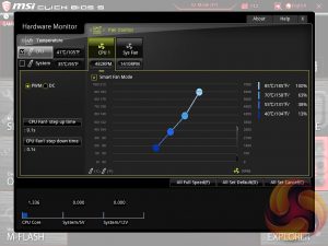 What becomes apparent in hardware monitor is that the system fan 1 and 2 controls are shared on this MSI board . This is highly impractical and it means you have to have the same fan speed profile for both connected devices. In our case we had connected the H100i v2 pump to one system fan port and the H100i v2's second fan to the other.