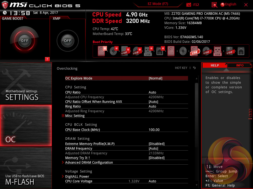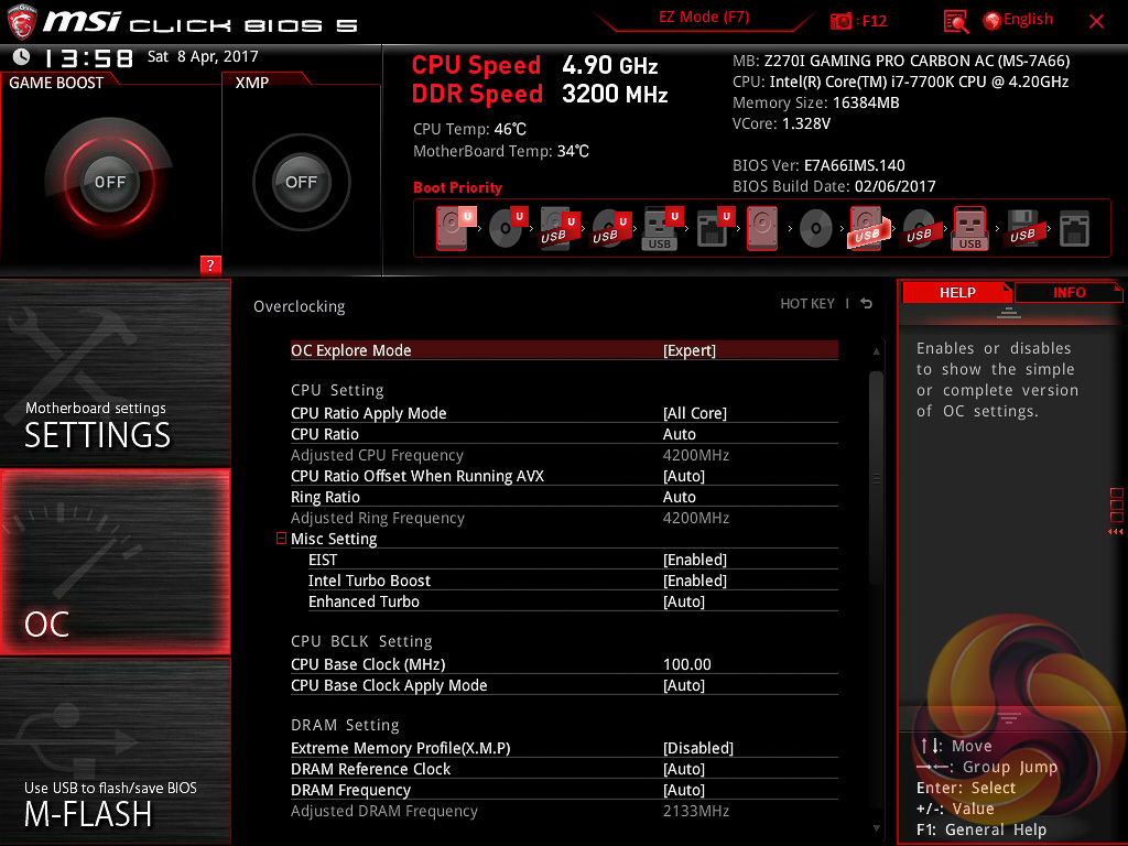 The OC tab is where the important options reside including all frequency and voltage options for the CPU and DRAM. It is recommended to toggle the “OC Explore Mode” into Expert straight away if you’re confident in your own ability since the Normal mode does limit some important options.