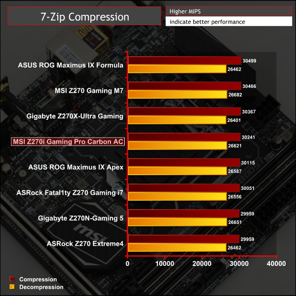 7-Zip is an open source Windows utility for manipulating archives. We measure the Total Rating performance using the built-in benchmark tool. The test stresses all CPU cores to 100% and shows an affinity for memory bandwidth.
