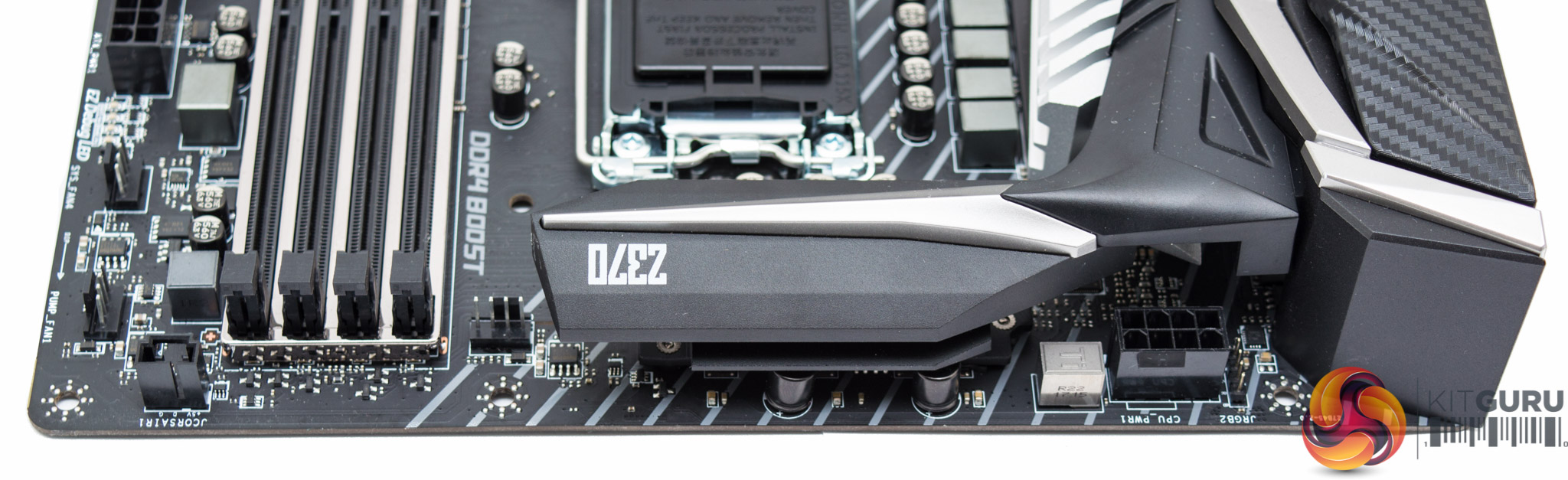 MSI provides debug LEDs for the Z370 Gaming Pro Carbon AC but there's no code reader or onboard power/reset/clear CMOS buttons, such overclocking features are reserved for higher end motherboards. All the connectors seem to be slightly recessed in from the edge of the motherboard for some reason, perhaps because it inherits part of its core design from a different size motherboard.