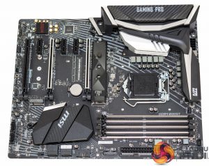 MSI's styling with the Z370 Gaming Pro Carbon AC is pleasant and neutral with an aesthetic focus on black with silver accenting. The “Carbon” in the name is reflected with some carbon-fibre-style inserts on the rear I/O shield and chipset heatsink.