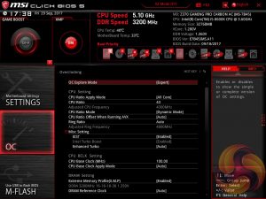 The real substance of the BIOS for most users is found in the OC tab where frequency and voltage settings related to the CPU, DRAM and other System components is found. It is advisable to toggle the “OC Explore Mode” into Expert straight away since the Normal mode does hide some useful options.