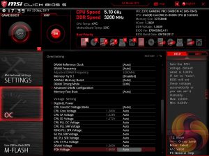 The range of LLC options is extensive too with Mode 1 (most aggressive) to Mode 8 (least aggressive) as well as an option for No overvolting, which is even less aggressive on the voltage than Mode 8. From our testing mode 2 will ensure an almost perfect voltage stability under load, mirroring the voltage specified in BIOS, while mode 3 isn’t far off either. The visual diagram MSI provides within the BIOS is useful in ascertaining the behaviour of each CPU LLC mode.