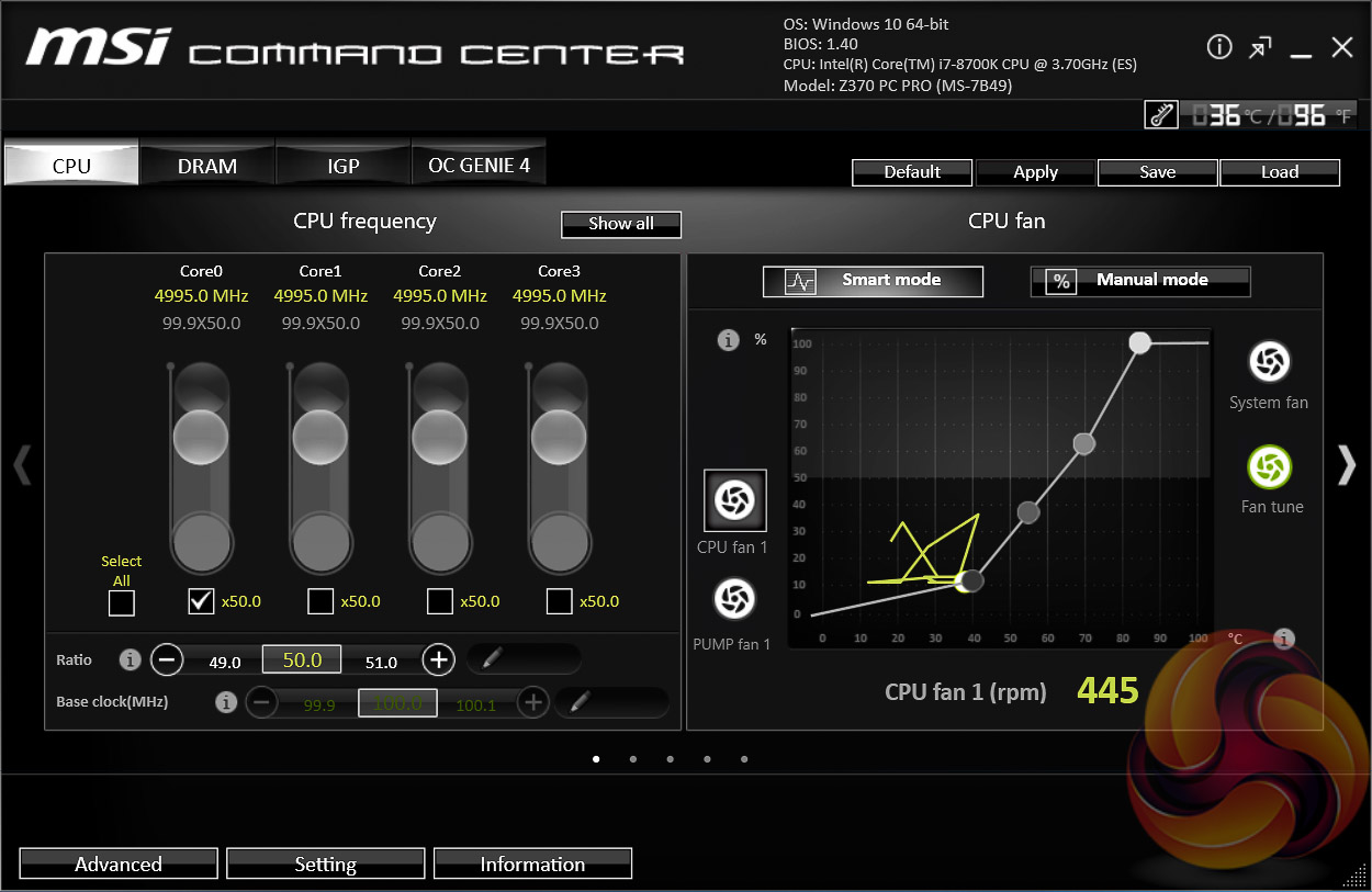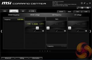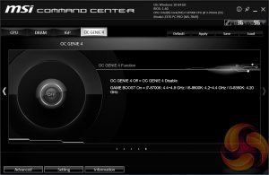 Command Center is the Windows performance tuning software for the MSI Z370 PC Pro with on-the-fly overclocking tools for the CPU, DRAM and iGPU, as well as fan controls. The virtual Game Boost button can also be toggled from within here but we find for the effort required users are better off doing some quick research to overclock their CPU since MSI has to overestimate the voltage to account for variations across all CPUs which usually results in considerably more voltage than is necessary being applied.
