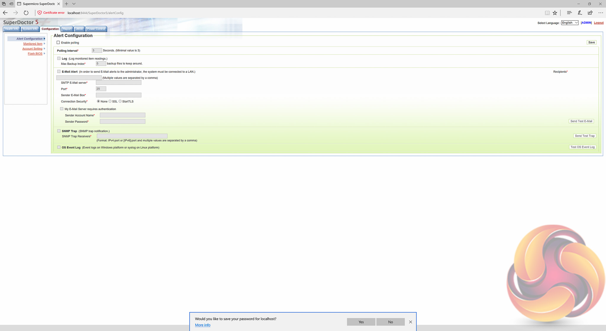 Supermicro SuperDoctor 5 comes with the driver/utility DVD but isn't on the Supermicro website. It's a very niche software utility that runs a local web server on the machine to monitor and configure the system through a web interface, the default login is ADMIN/ADMIN. It's a tool that looks and feels like a system administrator utility and it loses a lot of its useful functionality with the C9X299-PG300 since IPMI isn't supported.