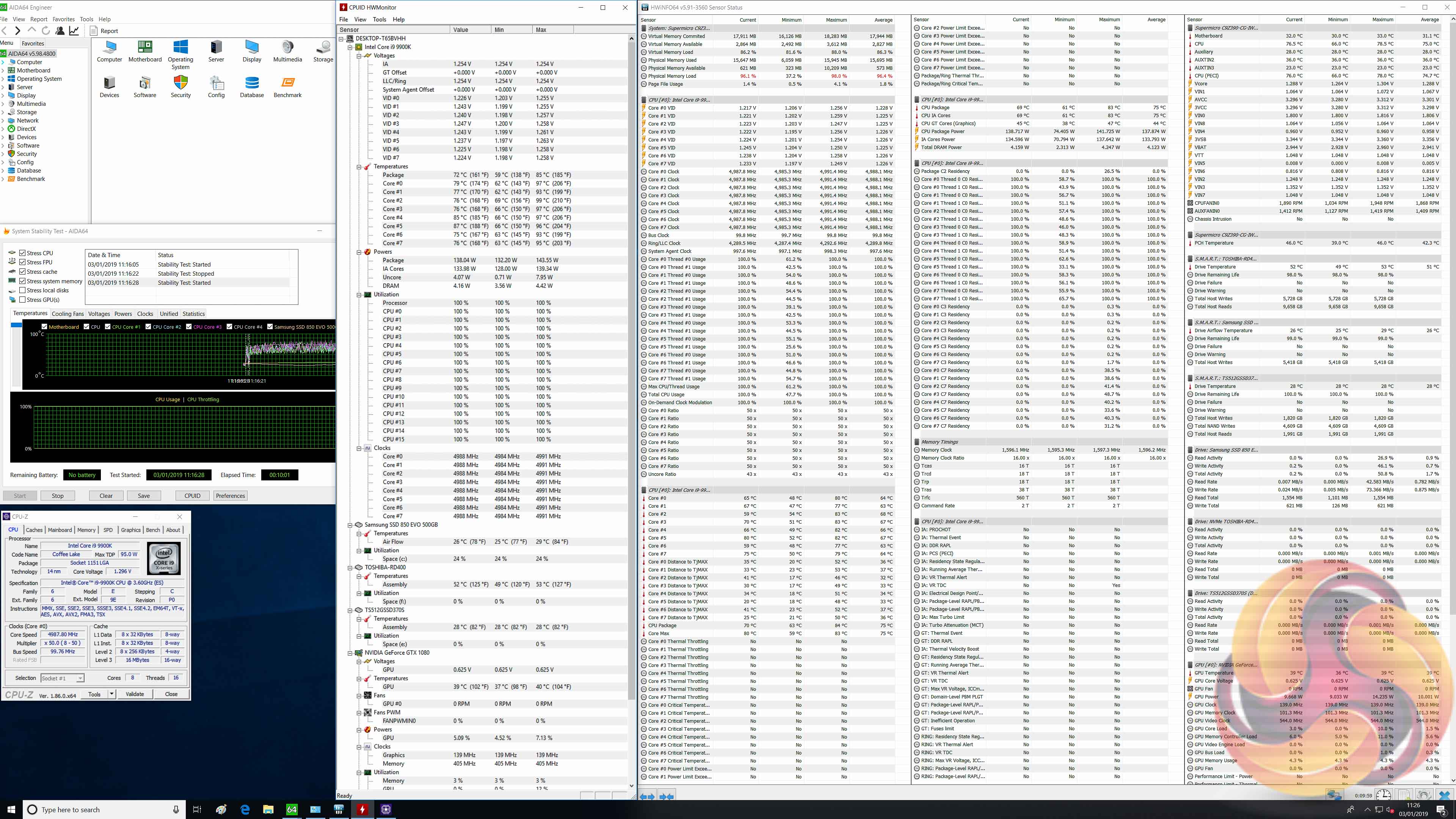 Our particular CPU is not stable at 5.1GHz even with 1.45v. The final stable overclock for almost all Z390 motherboards we may test should be 5GHz, unless there is something particularly wrong with the VRM that limits the voltage or power it can supply. In the case of the Supermicro SuperO C9Z390-CG-IW it achieved 5GHz at 1.28 volts with no significant issues.