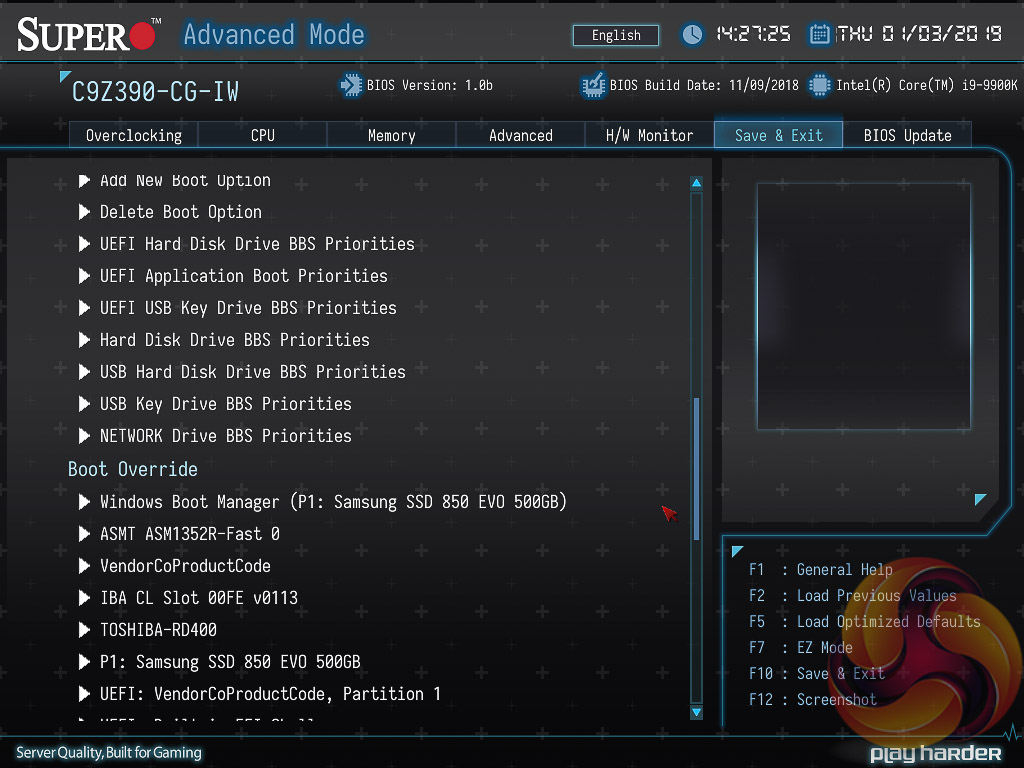 The Save & Exit section handles the boot order, boot override, has the BIOS profile options for saving and loading settings as well as the save and exit interface. It used to be called the Boot section, which made a bit more sense.