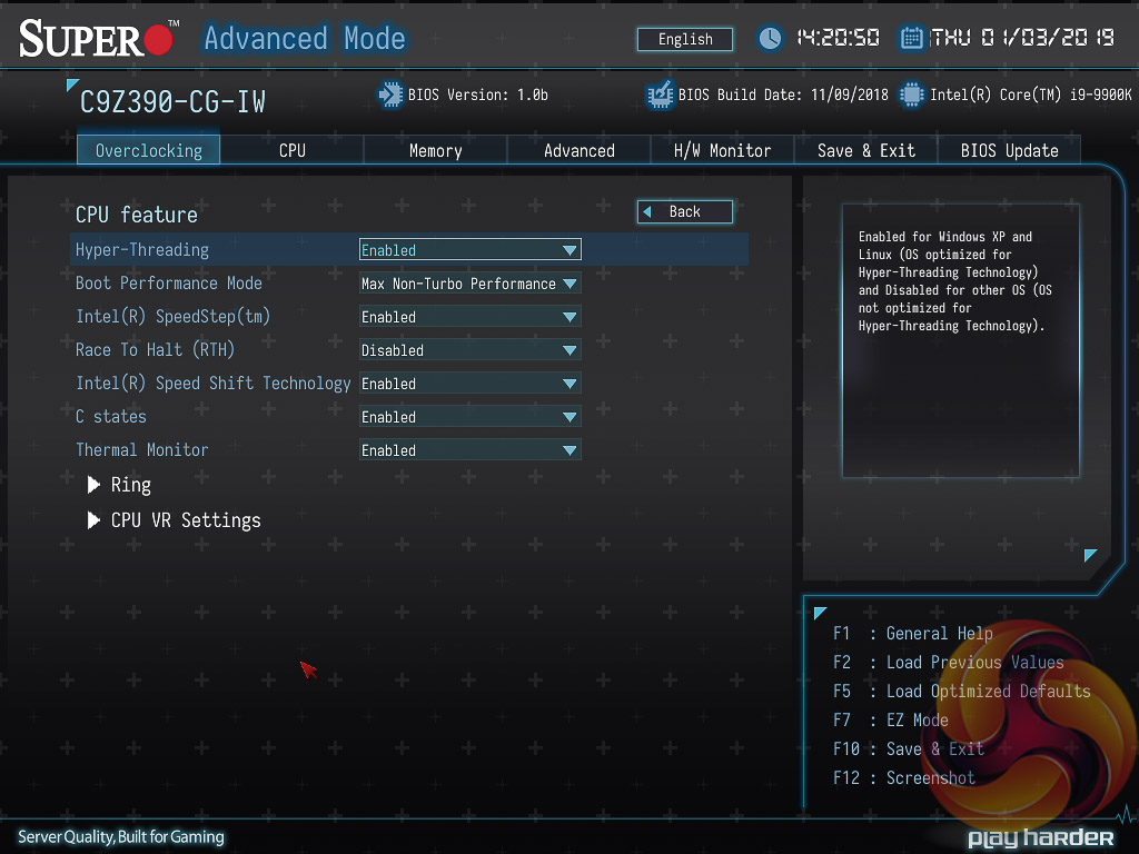The Overclocking options are exhaustive and Supermicro appears to give the user just about every option that Intel’s hardware allows for. It can be a little intimidating at first but there’s no reason to treat overclocking any different to other motherboards – simply dial in a core voltage in the “Voltage Configuration” section, using the millivolt format (1.2v = 1200mv), and then set the core ratio in the main “CPU Overclocking” section by tweaking all the core ratios to the desired frequency.
