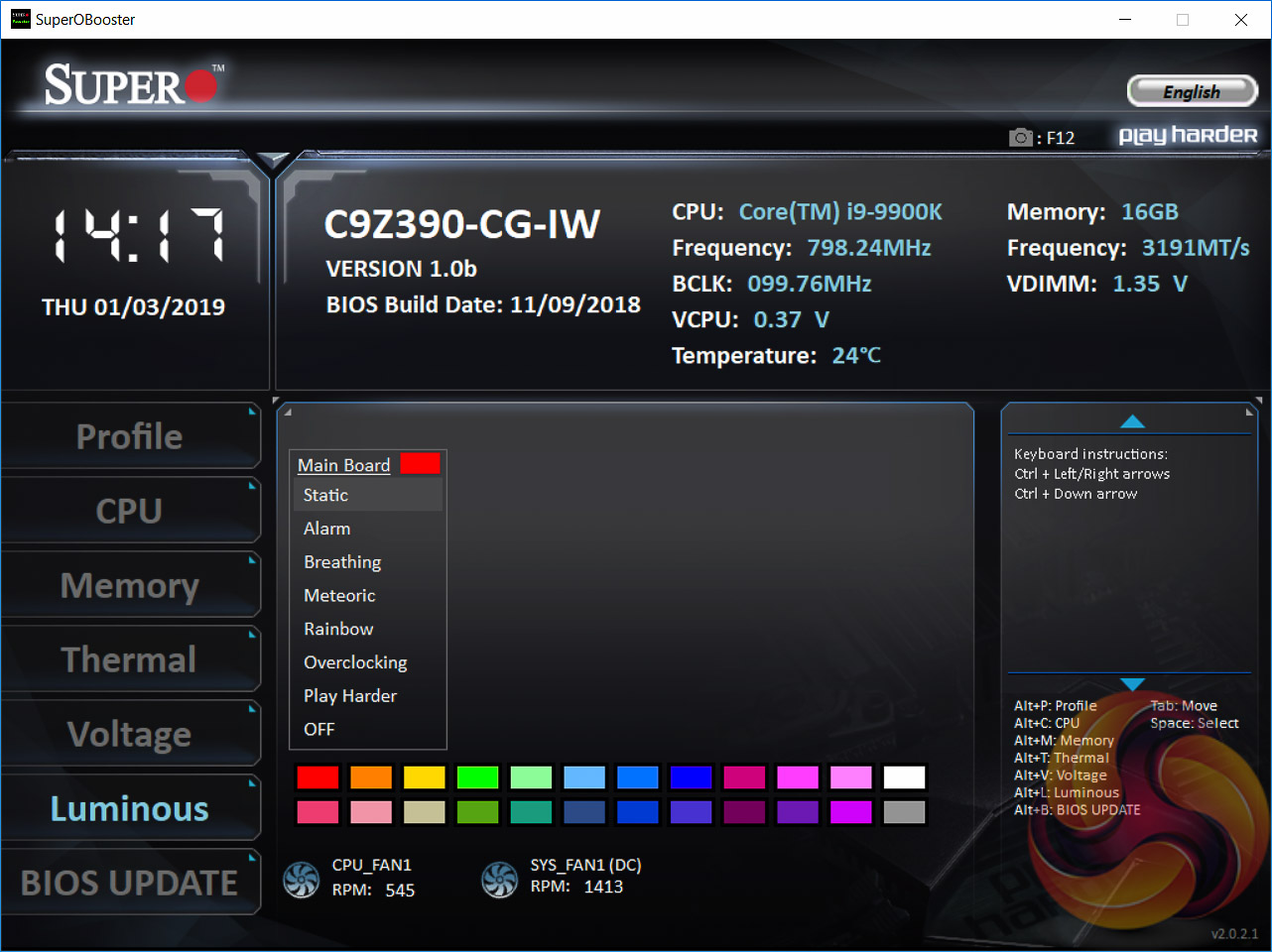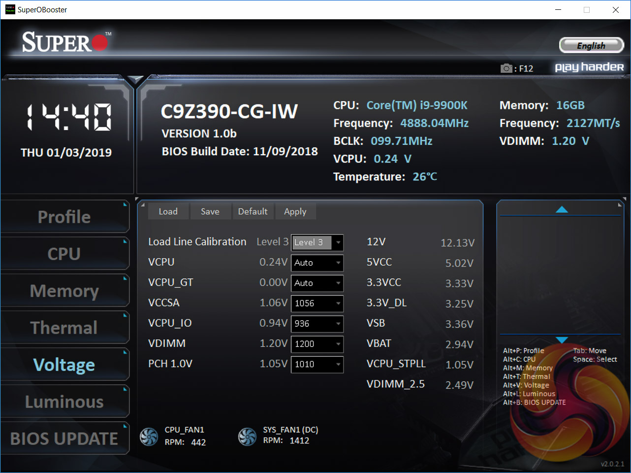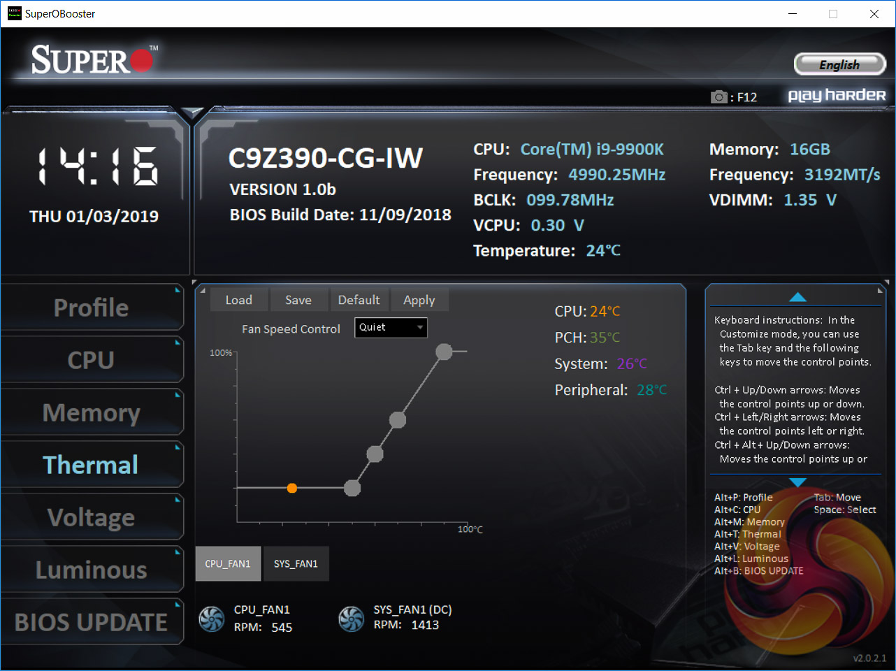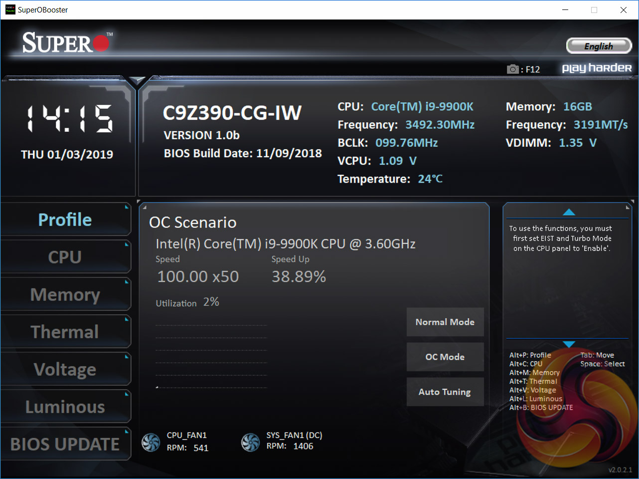 Supermicro’s SuperO Booster software is the main software package for the Supermicro C9Z390-CG-IW. It is a somewhat similar idea to the likes of ASUS AI Suite, ASRock A-Tuning/F-Stream, Gigabyte EasyTune and MSI Command Center, except better unified. Supermicro earns credit for convenience since all its relevant and useful functionality sits inside this single software package.