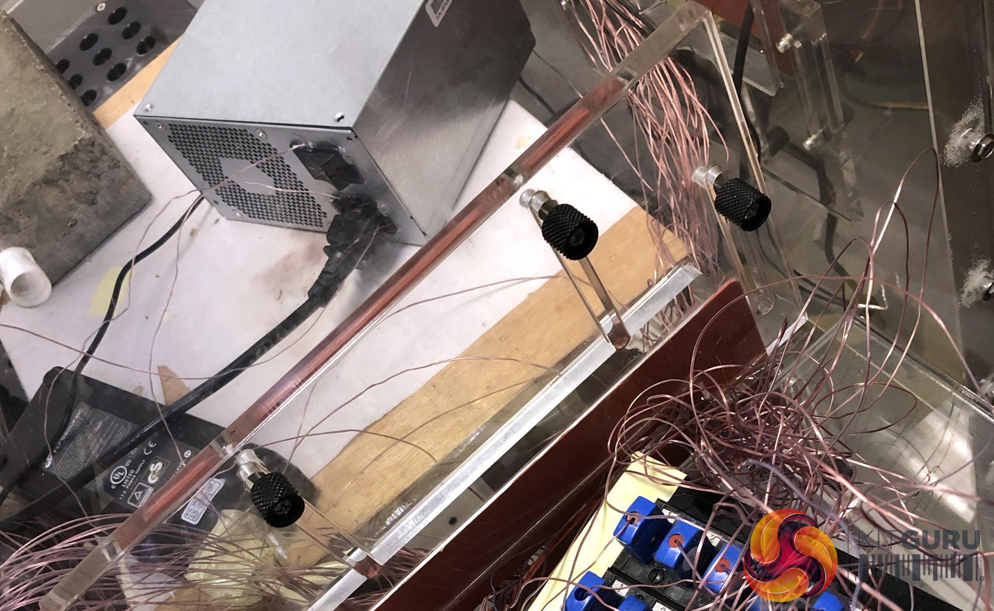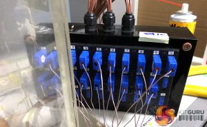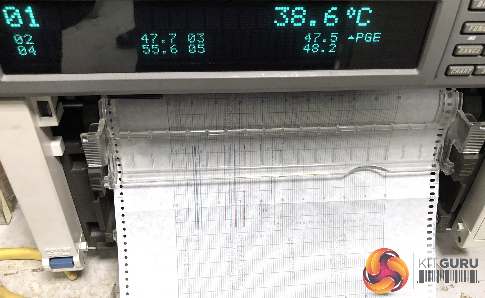 Special glue is used to attach sensors to every part of each PCB – measuring temperatures everywhere. The glue is designed to have zero impact on the results. The resulting ‘web' is quite possibly the maddest thing we have ever seen.