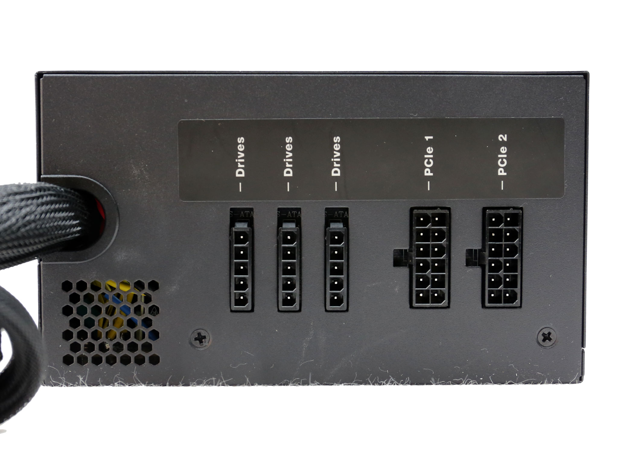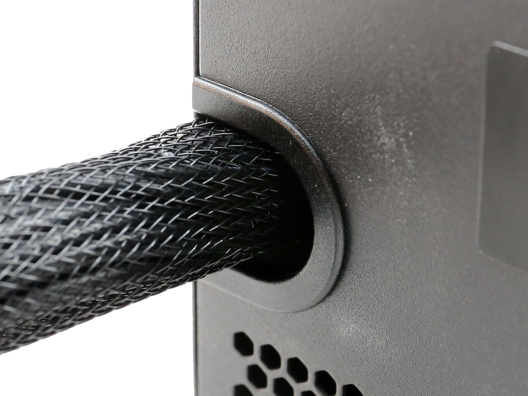 The modular panel only has five sockets, since two cables are fixed. Finally, there is a plastic grommet around the cable exit hole, to protect them from the chassis edges.