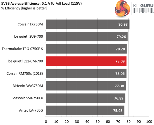 The supply should also achieve higher than 75% efficiency at 5VSB under full load, or with 3A if its max current output on this rail is higher than 3A.