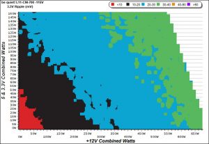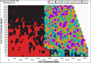 The 5VSB rail's ripple graph is colorful! The vivid colors might look nice, but actually depict a ripple suppression problem.