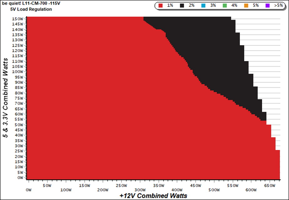To generate the following charts, we set our loaders to auto mode through our custom-made software before trying more than 1500 possible load combinations with the +12V, 5V, and 3.3V rails. The load regulation deviations in each of the charts below are calculated by taking the nominal values of the rails (12V, 5V, and 3.3V) as point zero. The ambient temperature is between at 30°C (86°F) to 32°C (89.6°F).