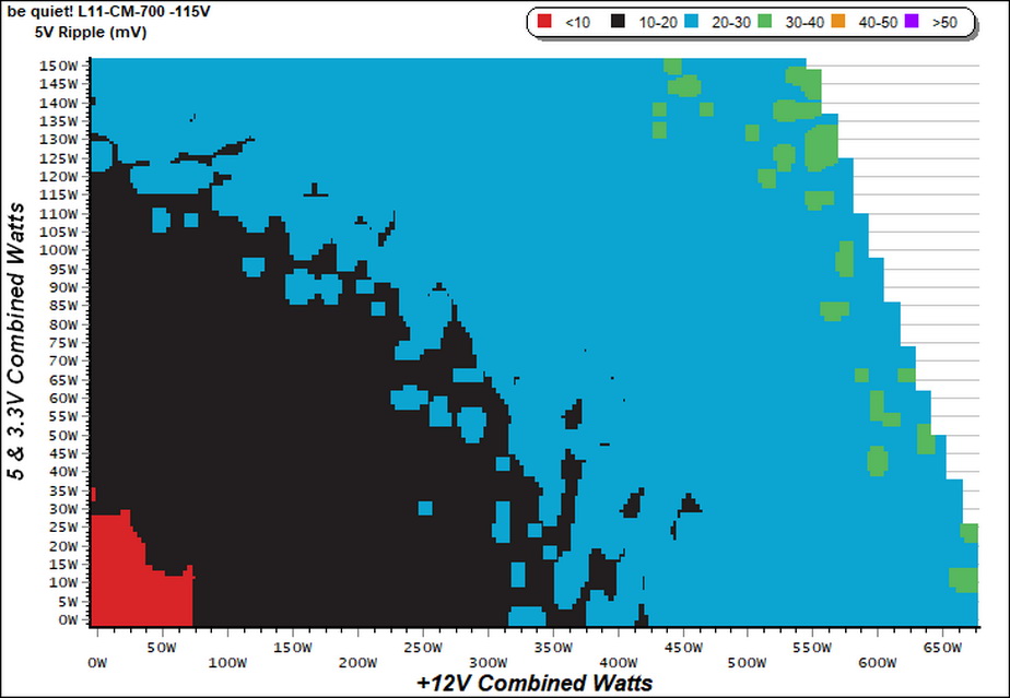The 5VSB rail's ripple graph is colorful! The vivid colors might look nice, but actually depict a ripple suppression problem.