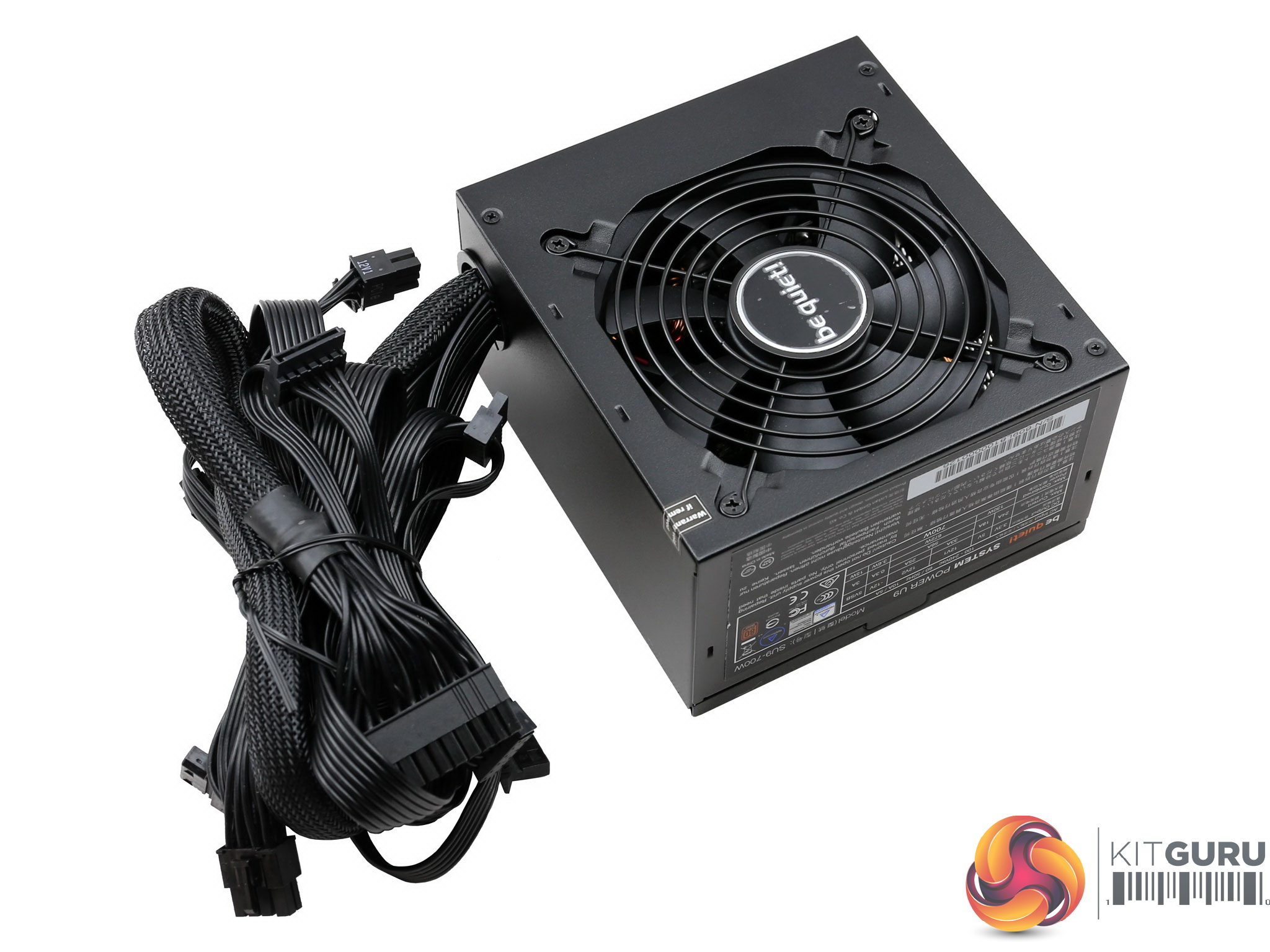 The be quiet! logo is stamped onto one of the sides, while on the other is a large power specifications label.